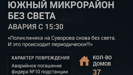 ⚡ Южный микрорайон без света в Хабаровске: авария с 15:30 — в числе пострадавших Поликлиника №11