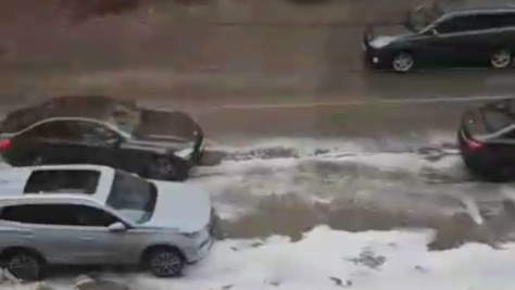 Странная пена заполнила дорогу на улице в Волгограде - видео
