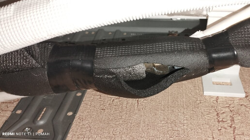 Крайне неприятно, когда внезапно из внутреннего блока кондиционера по стене начинает течь вода. Причин может быть несколько: проблемы с дренажной системой, утечка фреона (при которой начинают обмерзать трубки) и нарушение теплоизоляции. Вот с последним вариантом я и столкнулся на днях. На фото хорошо видно, что гайки и трубки не были хорошо закрыты штатным фрексом. Монтажники явно не понимали, что они делают (все остальные проблемы с кондиционером это только подтвердили). Гайки при работе кондиционера ледяные, воздух в помещении - теплый, теплоизоляция отсутствует...