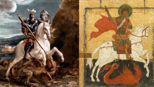 Традиция изображать конного рыцаря пришла к нам из Западной Европы. Имеет католическое происхождение. И ничего православного в этом образе Святого Георгия нет. Почему все боятся сказать правду? И продолжают называть одну легенду именем другой? Выдают «Золотую легенду» за «Чудо Георгия о змие»? Величайший обман в истории России. Страшная тайна русского всадника-змееборца. Легенду Святого Георгия знают все: Устремился на коне своем на змея, потрясая копием и, ударив змея с силою в гортань, поразил его и прижал к земле; конь же святаго попирал змея ногами...