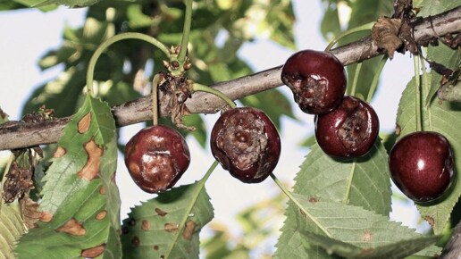 Вишня – одна из самых любимых садовых культур, но иногда садоводы замечают, что завязавшиеся плоды, не успев созреть, становятся коричневыми, засыхают и осыпаются. Причин у этой проблемы может быть несколько – от болезней до неправильного ухода. Разберём их подробно, чтобы спасти урожай. Чаще всего вишня страдает от грибковых инфекций, которые поражают завязи и молодые плоды. 🔹 Симптомы: Плоды буреют, мумифицируются, но не опадают сразу. Листья и побеги выглядят обожжёнными.