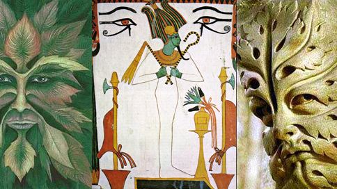 Осирис, Ауссер–или Виззер (Wsjr), является изначальным Зеленым Человеком–он является землей и землей в своем представлении человечества, мигрирующего через циклы сознания. Он-семя, "я", солнце и вселенная, дающие возможность сознанию выражать себя как проявление в физическом, земном царстве. Как таковой, он связан со всеми фазами сельскохозяйственных процессов и с символикой древа жизни. Он выражен как зеленый во многих изображениях, чтобы представить эти ассоциации и их связь с плодородием земли, его двойным женским аспектом...