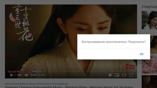 Относительно недавно при просмотре видео из плейлистов на Youtube появилось оповещение "Воспроизведение приостановлено. Продолжить?" (Video paused. Continue watching), которое ставило видео на паузу и для того чтобы продолжить просмотр надо было нажать на ОК. Аналогичную проблему можно наблюдать и в приложении Youtube. В данном видео я расскажу как можно решить эту проблему и почему она возникает. С недавних пор на видеохостинге Youtube при долгом прослушивании музыки можно увидеть такое оповещение "Воспроизведение приостановлено...