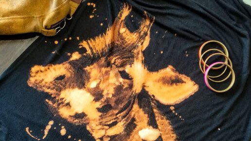 Что такое хлорка знают все . Она едкая и вонючая- просто яд! А вы пробовали рисовать хлоркой ? Нет, не так чтобы были бессмысленные пятна или хулиганские надписи, а так чтобы получился красивый изысканный рисунок . Всё началось с того, что за домашними делами я случайно посадила пятно "белизной" на платье из черного трикотажа. Кому -то испорченная вещь, а для меня это вызов. Я часто практикую такие, вещи как маскировка пятен росписью акрилом или другим декором. Но яркие рыжие пятна на чёрном фоне вдохновили меня на роспись хлоркой ...