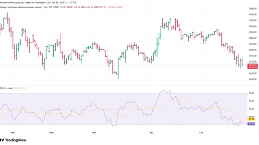❗️25 сентября российский фондовый рынок снизился, индекс МосБиржи подешевел на 0,55% до уровня 2708,68