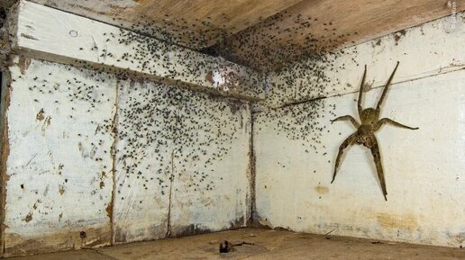 На фото – бразильский странствующий паук охраняет свое потомство под…кроватью. Найти такого «жильца» - удовольствия мало. Ведь его яд в 18 раз сильнее чем яд черной вдовы! В книге рекордов Гиннесса этого паука признали самым ядовитым среди паукообразных. Кроме этого он отличается весьма агрессивным поведением. Туловище паука достигает 5 см, а вот лапы – до 15 см. Из-за чего выглядит он весьма массивным. Двигается паук очень быстро и не признает авторитетов – габариты потенциального противника его ничуть не смущают...