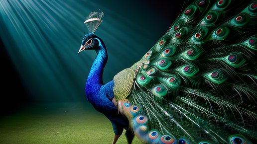 Павлин раскрывает свой шикарный хвост и показывает его со всех сторон