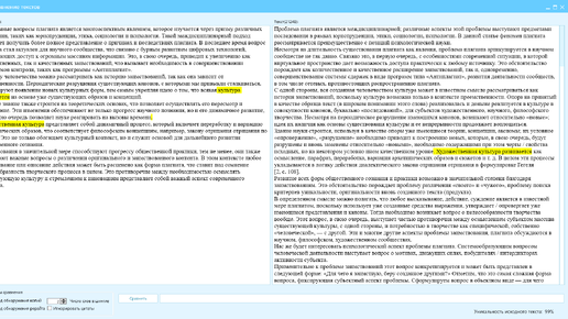 Как мы уже писали, КонтрПлагиат - метод призванный повысить уникальность текста, путем перефразирования, для успешного прохождения проверки на плагиат. Метод предусматривает этапы: извлечение фактов; группировка, дополнение фактов; написание нового текста на основании перегруппированных и дополненных фактов. Рассмотрим на примере, как перефразировать текст с высокой уникальностью. Шаг 1 - выявление фактов, которые содержит текст 1. Проблема плагиата рассматривается как междисциплинарная, охватывающая юриспруденцию, этику, социологию и психологию...