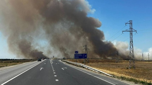 В Симферополе перекрыли выезд одного направления из города из-за пожара у трассы