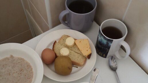 Мой супруг за лето успел полежать несколько раз в разных больницах после ДТП. Естественно, он мне отчитывался, что у него было на завтрак, обед и ужин. И ныл, что ему мало еды и он вечно голодный… Посмотрите внимательно на фото ниже и скажите, чего на них не хватает. Это завтрак - овсяная каша, хлеб, немного сыра, яйцо. Это обед - суп с картошкой и мелкой вермишелью, гречка с подливкой, хлеб. Ну и ужин классический - макароны и котлета вроде как из мяса, но на самом деле там что-то типа перемолотой крупы с мясом...