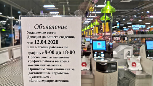 Из-за эпидемии некоторые магазины и другие заведения, которые не закрылись, уменьшают время работы. Пятёрочка у моего дома сегодня вообще в 18:00 закрылась.