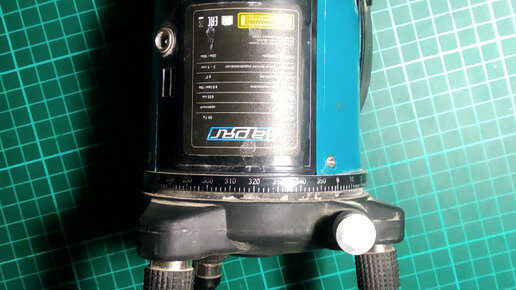 Лазерный уровень ВАРЯГ УЛК-5. Почему то стикер вверх ногами (потом понял почему). При включении начинает пищать и не реагирует на кнопки. Для начала пришлось ознакомится с матчастью)). Благо, в сети легко находится информация. Главное, как я выяснил, он пищит, если не может найти равновесие (откалиброваться?). Принцип простой - висит металлический отвес, под тяжестью он должен принять вертикальное положение. Во время этого процесса он пищит - это сигнал, что отвес не вертикален. Если всё нормально- секунд 3-5 проходит и он перестаёт пищать и готов к работе...