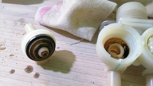 Подтекание воды в стиральной машине автомат происходит по причине засорения электромагнитного клапана. Повышенная жесткость, взвесь песка и ржавчины не дают механизму перекрыть воду полностью. Стабильная утечка может спровоцировать затопление квартиры. Существует легкий способ очистить запорный узел и привести его в заводское состояние. Снятие и разборка В этом примере ремонтирую клапан со стиральной машины LG. Общая конструкция позволит очистить подобные узлы и на других стиралках. Требуется снять...