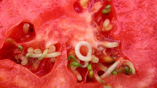 В томатах и огурцах в мякоти содержатся соединения, которые тормозят прорастания семян. Эти соединения - ингибирующие вещества. Если бы их не было, то в помидорах семена всегда прорастали бы. Там тепло и влажно, что вполне комфортно для семян. Но такое происходит крайне редко. Современные сорта томатов или гибриды отличаются высокими транспортабельными свойствами. Они могут храниться длительное время. За эти недели-месяцы ингибирующее вещество постепенно исчезает, следовательно семена начинают прорастать...