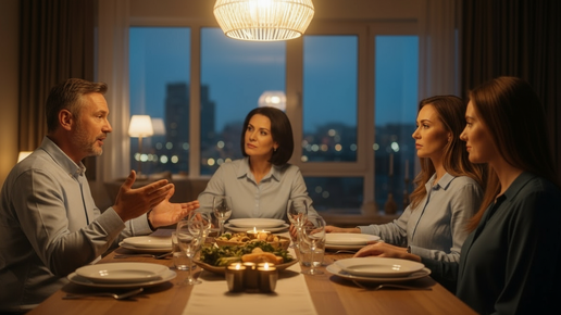 Запах маминого жаркого из говядины всегда предвещал важное событие в нашей семье. Обычно мы питались пельменями из «Магнита» и куриными ножками, но сегодня на кухне витали ароматы детства. — Лена, ты стол накрыла? — крикнула мама из кухни. В ее голосе послышалось то самое напряжение, которое появлялось всякий раз, когда речь заходила об отце. — Да, мама, всё готово! — отозвалась я, расставляя на столе мамины лучшие тарелки с золотистой каемочкой, которые обычно пылились в серванте. Алиса нервно поправляла скатерть, то и дело поглядывая на телефон...