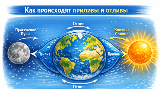 Если понаблюдать за морем или океаном, можно заметить интересную закономерность: уровень воды то поднимается, то опускается. Эти регулярные изменения называются приливами и отливами...