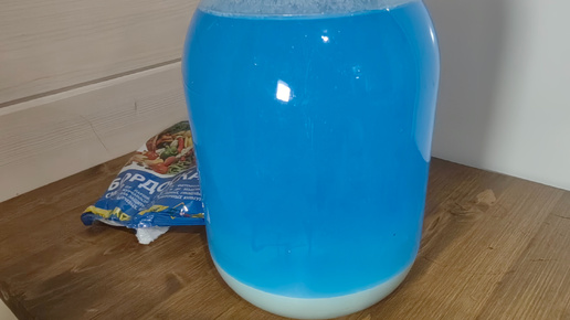 На шестом десятке выхватить такого леща… И от кого? От голубой жижи, верным адептом которой я была столько лет. Короче, бордоская жидкость в самый ответственный момент показала мне козью морду. Если вы не видели, то я продемонстрирую вам, как выглядит свернувшаяся бордоска. Вот, прозрачный голубой раствор и осадок мелка на дне. Пытаться восстановить статус кво взбалтыванием бесполезно, всё равно осядет: Сытый голодного не разумеет. И в течение всех этих хлебных бордоских лет я не понимала, почему многие читатели с упорством отвергнутых возлюбленных отрицают отличное средство защиты...