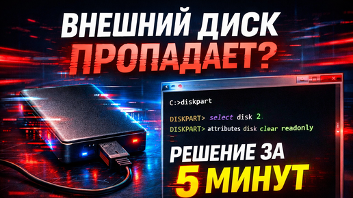 🚫 Внешний диск появляется и пропадает? Решение через командную строку (проверенный способ)