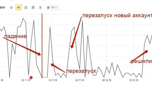 Пост навеян историей, которая приключилось с одним рекламным кабинетам моего клиента. В один прекрасный ноябрьский день клики по рекламе резко пропали: На фоне общего падения трафика из-за сезонности на недельном графике спад был не особо заметен. Но в какой-то день клики вообще пропали. Мы несколько раз пытались перезапустить кампании с нуля. Этот способ помогает, если случается какой-то глюк в алгоритмах Яндекса. Берем кампании и просто копируем на новый аккаунт и реклама начинает работать как раньше...