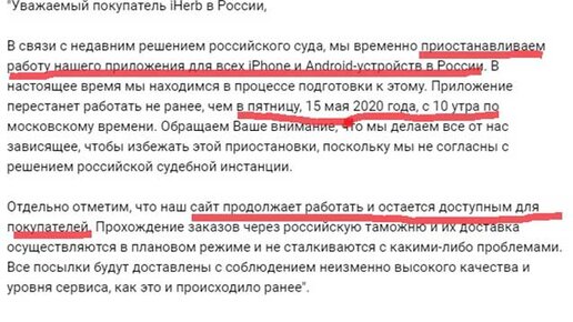 Не думала сегодня писать этот пост, но у Айхерб серьёзные изменения - с завтрашнего дня приложение iherb для всех iPhone и Android-устройств Росии перестаёт работать! Причина - решение российского суда...