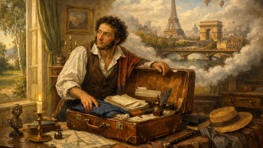 Александр Сергеевич Пушкин — солнце русской поэзии, человек, который умудрился прославить Россию так, что она до сих пор отвечает ему взаимностью всей школьной программой. И при этом — парадокс! — сам поэт не раз мечтал уехать. Причём не просто «в отпуск», а всерьёз, с чемоданом, планом и медицинской справкой сомнительного происхождения. В середине 1820-х годов Пушкин оказался в положении, которое сегодня назвали бы «невыездным». Он страстно хотел увидеть Европу, Грецию, Америку, Китай — да хоть край света, лишь бы с заграничной печатью в паспорте...