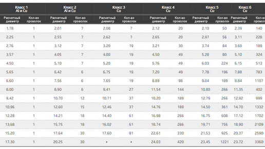 Сечение кабеля по диаметру жилы