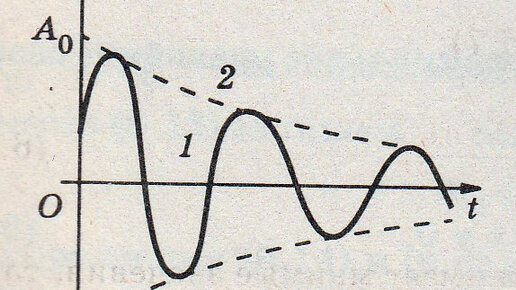 Для школьников. Во всех колебательных системах, при выводе их из положения равновесия, кроме возвращающей силы присутствуют силы трения или силы сопротивления, препятствующие их колебательным движениям. Поэтому полная энергия колебательной системы, расходуемая на работу против сил трения (сопротивления), уменьшается, колебания затухают и прекращаются. На рисунке слева показан график зависимости смещения колеблющейся точки от положения равновесия от времени для затухающего колебания. Пунктирной линией изображено изменение амплитуды затухающего колебания...