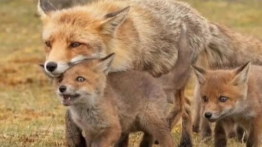 Как лисица растит лисят