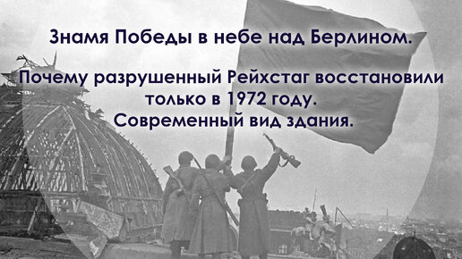 Знамя Победы в небе над Берлином. Почему разрушенный Рейхстаг восстановили только в 1972 году. Современный вид здания.
