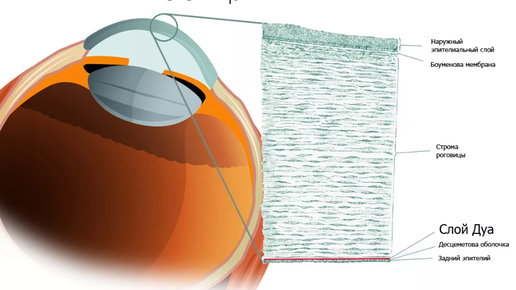 Роговица - это прозрачный фасад глаза, т.е. самая внешняя ее часть, именно на нее надевают контактную линзу те, кто имеет проблемы со зрением. Толщина роговицы в центре от 0, 52-0, 60 мм, а по краям от 1-1, 2 мм. Несмотря на то, что с виду роговица кажется однородной, на самом деле это настоящий “пирог”, состоящий из шести клеточных слоев: В норме роговица имеет вид полусферы, ее радиус в любой точке одинаковый. Если же значение в одной точке оптической зону отличается от значения в другой, то это...