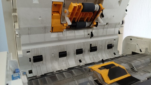 Сердце автоподатчика — пара резиновых роликов. Производитель заявляет ресурс в 80 000 копий, но реальная жизнь вносит коррективы. Пыль, повышенная влажность, микроскопические волокна с бумаги низкого качества — всё это действует на резину как абразив...