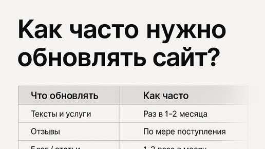 Это рабочий инструмент. И как любой инструмент, он требует ухода и регулярного обновления. Поисковики видят, что сайт обновляется → значит, он актуален → значит, его можно показывать выше в выдаче. Вы расширили услуги? Появился новый продукт? Изменился график?