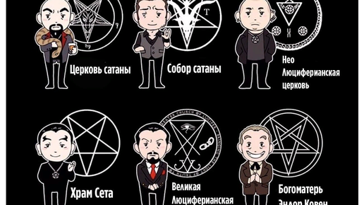 Когда речь заходит о сатанистах, многие представляют себе злобных людей, которые ночью на кладбище совершают всякие непристойные вещи. На самом деле сатанизм бывает очень разный. В этой публикации я расскажу Вам о восьми известных религиозных общинах сатанизма. 1. Церковь Сатаны Церковь Сатаны - первое официально зарегистрированное религиозное движение, которое объявило сатанизм своей идеологией. Церковь Сатаны была основана Антоном ЛаВеем в 1966 году в США. Ее официальным символом считается сигил Бафомета...