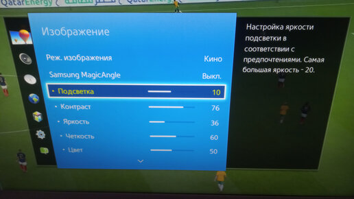 Главное, Вам не придётся разбирать свой телевизор и распаивать новые элементы на плате питания. Ибо, телевизор – это не осветительный прибор, а более сложно сконструированный электроприбор. ПРИСТУПИМ. В настройках телевизора есть такие пункты, как: ЯРКОСТЬ И ПОДСВЕТКА. Именно эти настройки или одна из них, отвечают за яркость свечения светодиодов в подсветке телевизора. Эти параметры находятся в основном меню ----->Изображение. Бывает, что присутствует только настройка "ЯРКОСТЬ", как в моем случае с телевизором SAMSUNG UE65AU7100U...