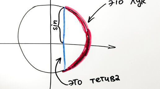 Никогда не задумывались, почему синус называется именно синусом, а не как-нибудь по-другому? Или думаете, что это в честь фамилии его открывателя? Черта-с два, всё гораздо запутанней и интересней. И в то же время логично. Изначально синус назывался вовсе не синусом, а так, как его изначально назвали индийские математики — "арха-джива", что в прямом переводе на русский можно перевести как "полутетива". И вот тут как раз всё очень логично. Посмотрите на рисунок ниже. Затем, чтобы было короче, слово "арха" отбросили и стали называть синус просто "джива"...