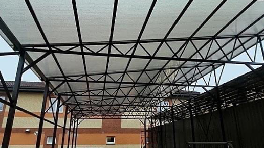 Односкатные навес 6*24 м Поликарбонат 8 мм Поликарбонат – это современный материал, который прекрасно замещает стекло, при этом ничуть не уступает ему по многим свойствам. По сравнению со стеклом поликарбонат прочнее в 100 раз, чем стекло и в 10 раз прочнее акрила. Различают три вида поликарбоната: 🔩Сотовый 🔩Монолитный 🔩Профилированный Сотовый поликарбонат в сечении состоит из нескольких слоев – монолитных поверхностей, параллельных друг другу. Между ними располагаются ряды ячеек, имеющих прямоугольную или треугольную форму...