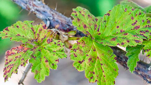 Листья смородины погибают из-за антракноза и септориоза, заболеваний, которые могут присутствовать одновременно и иногда встречаются на крыжовнике. Антракноз вызывает появление пятен неправильно-угловатой формы, которые имеют зеленовато-желтый или светло-бурый цвет в центре и бурый - по краю. Иногда на листе может быть до 120-150 пятен. Септориоз характеризуется зеленовато-серыми, белесыми или желтовато-бурыми пятнами, немного вытянутыми через жилки, светлеющими внутри и с красно-бурым краем и черными точками...