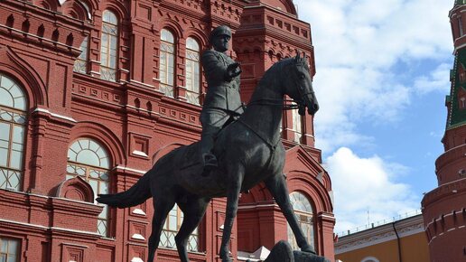В нашей воскресной рубрике «Искусство о войне» представлялись картины, фильмы, музыка, но ещё не было скульптуры. Постоянный ведущий рубрики Дмитрий Селезнёв открывает на @wargonzo и этот вид искусства. Памятник Жукову, который стоит в самом центре Москвы перед Историческим музеем, – это великолепный диалектический художественный феномен. На постаменте – маршал Жуков на коне, он принимает парад и объезжает свои войска, дошедшие до Берлина. Памятник отражает всю мощь Советской Империи, он выражает...