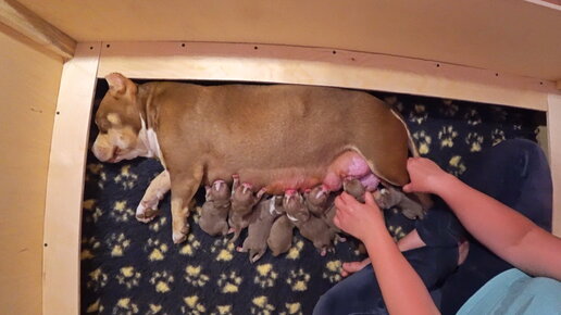 Собака впервые увидела своих щенков! Щенки родились 2 часа назад!