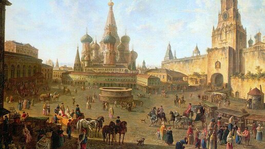 Потому что он говорил правду. А это во все времена считалось подвигом... Собор Василия Блаженного на Красной площади – один из символов нашей страны. Впрочем, его официальное название – Собор Покрова Пресвятой Богородицы на Рву. Почему на рву? Потому что раньше Московский Кремль был окружён рвом – как всякая крепость. Присмотритесь, вы увидите его вдоль кремлёвской стены на картине: Вот у этого рва и был заложен в 1555 году по велению царя Ивана Грозного новый собор. В те годы русский царь воевал с Казанским ханством...