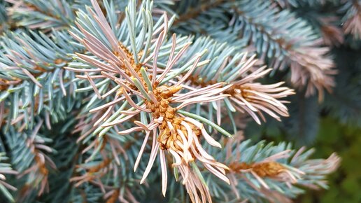 Многие садоводы, которые выращивают у себя на участках ель колючую, сталкиваются с такой проблемой: кончики побегов на дереве сначала розовеют, затем увядают и усыхают. Если побег вовремя не удалить, на нём появляются маленькие черные точки. Что же это такое? Это ничто иное, как заражение грибом Acanthostigma parasitica из отдела Аскомикота. Именно грибом, а не грибком. Такой болезни как "грибок" на растениях не бывает. Мицелий этого гриба поселяется в хвое, и постепенно убивает её. Если ничего не предпринять, дерево погибнет...