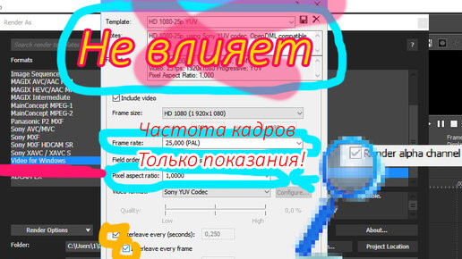 Что в Sony Vegas означает каждый раздел при рендере