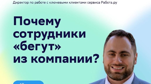 Почему сотрудники бегут из компании? На третьей конференции «Рекрутмент-2025» директор по работе с ключевыми клиентами сервиса Работа.ру Станислав Татосов расскажет: 🔹На что обращают внимание кандидаты при выборе места работы 🔹В каких отраслях продолжает...