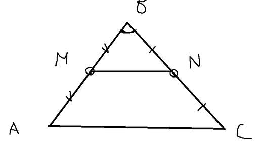 У нас есть треугольник ABC, M и N - середины сторон AB и BC.