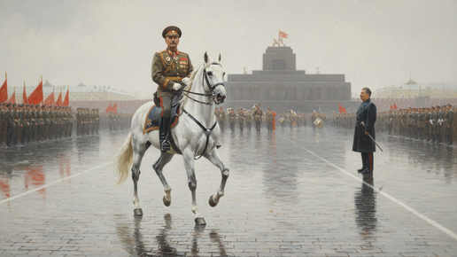 24 июня 1945 года Георгий Жуков выехал на Красную площадь верхом на белом коне. Белоснежный арабский скакун. Маршал в парадном мундире. Оркестр. Сто тысяч солдат на площади. А на трибуне Мавзолея стоял Сталин. В шинели. Без коня. И если вы думаете, что это был его осознанный выбор — что Верховный главнокомандующий великодушно уступил лавры победителя своему маршалу, — то история сложнее. Намного сложнее. И интереснее. Война не заканчивается в тот момент, когда подписывают капитуляцию. Это важно понимать...