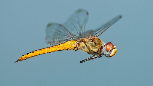 Стрекоз можно назвать прирожденными летунами. В воздухе эти насекомые проводят очень много времени, причем большинство видов без труда показывают примеры техники высшего пилотажа. К примеру, стрекоза может зависать в воздухе, лететь очень быстро или очень медленно, неожиданно менять направление своего полета в любом направлении. У стрекоз четыре крыла, которые действуют независимо друг от друга. Можно было бы думать, что движения переднего и заднего крыльев синхронизированы таким образом, что оба крыла составляют как бы единое целое, одну плоскость...