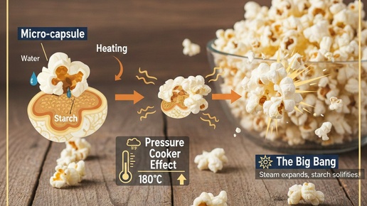 🧪 Наука в быту: почему попкорн «стреляет» и выворачивается наизнанку