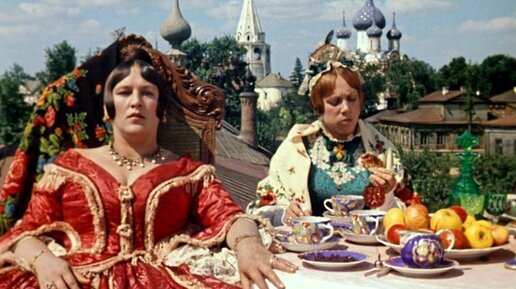 В старом Суздале в одном из дворов мы видим умиротворяющую картину чаепития...