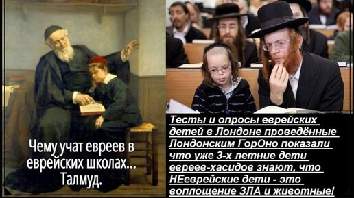 Чему учат евреев в еврейских школах... Талмуд. "Когда я впервые прочитал Талмуд, то заметил странную вещь. Я испытал большие трудности в попытках найти его копию. Талмуд не продается в книжных магазинах, а многие библиотеки не имеют его экземпляров. По общему признанию объем Талмуда в несколько раз превышает объем Библии, но, безусловно, Талмуд может быть отпечатан (издан) по номинальной стоимости, как это делается в отношении Библии, на тонкой бумаге и в дешевых бумажных переплетах. Как и к большинству Священных Писаний одной из ведущих мировых религий, интерес к нему может быть очень большим...