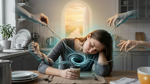 Знакомое состояние: ты проспала положенные 8 часов, за окном выходной, а встать с кровати - это уже подвиг? Ты пьешь вторую чашку кофе, но бодрость не приходит. Вместо нее - вязкое чувство, будто ты "недогрузилась", как старый телефон с убитым аккумулятором или Телеграм на бесплатном VPN. Многие списывают это на авитаминоз, погоду или возраст. Но как психолог с обширной практикой, я знаю: чаще всего проблема в огромной психологической "дыре", куда сливается твоя жизненная энергия. Давай разберем три самые глубокие воронки, которые оставляют тебя обесточенной...